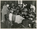 Cadets in Clemson College LibraryClemson University LibrariesOn back: [c1947]; Bird's Eye View of Bookworms---Clemson College, S. C.; In the near silence so traditional to libraries, Clemson College students conduct their references. This is the main library reading room at Clemson, South Carolina's agricultural and engineering college. The college museum, containing hundreds of souvenir pieces from the battlefields of World War II, is housed on the second floor. An all--ROTC college with a a regular enrollment of 2,340 all-men students, Clemson had more than 6,000 former students in America's armed services during World War II.