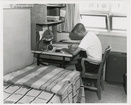 Student Studying in Johnstone Hall B/C Dorm RoomClemson University LibrariesSouth-facing interior shot of male student studying in his dorm room in Johnstone Hall B/C (now demolished). Cope Hall is visible through the windows. Photo taken before windows were replaced in the late 1960s. On back: [dorm interior] Student studying; Clemson News Bureau, photo by William D. Cromer