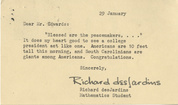 Letter from desJardins to Edwards, January 1963Clemson University LibrariesPostcard congratulating Edwards for acting like a college president should and making South Carolinians giants among Americans.