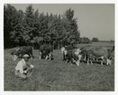 Farmers inspecting grasses with cows, 1950 May 9 Clemson University Libraries Work - agricultural engineering - planting and cultivating.