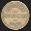 Exposition department store token; "good for 25 cents in trade"; reverse