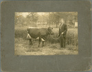 Photograph of Tom Bennett posing with a cow Clemson University Libraries Photograph of Tom Bennett, general manager of Brandon Mills, posing with a cow, standing in a corn field