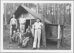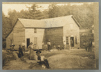 Group portrait photograph of eight boys, Newry, S.C. Clemson University Libraries Photograph; group portrait of eight boys, Newry, S.C.; boys pose in front of a small wooden building