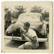 Tyler Russell kissing trophy Clemson University Libraries On back: 1949