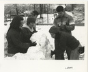 Students building snow fort Clemson University Libraries On front; Lewis. On back: [snow scene]; snow