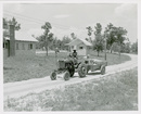 Man driving tractor at 4-H Camp Daniels, 1953 July
