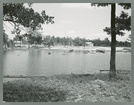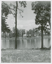 View of lake and building at 4-H Camp Daniels, 1953 July 15