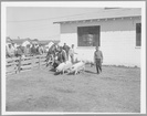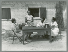 Attendees waiting for lunch at 4-H Camp Dixon, 1938 June