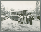 Youth leaving bus at 4-H Camp Daniels, 1949 July 20
