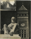 Composite image of distance and close up shots of cast stone Thomas Green Clemson statue on Clemson University campus, circa 1941