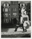 A. Wolfe Davidson looking at Thomas Green Clemson statue on Clemson University campus, circa 1966