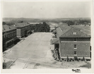 Clemson campus scene Clemson University Libraries Main Building and Barracks no. 3, no. 2, and no. 1 taken from south.