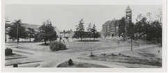 Clemson Agricultural College, South Carolina, 1894Clemson University LibrariesCadets with marching band in formation on south side of Main Building and wing of Barracks No. 1. On back: Copy made by Clemson Photo Lab, Feb. 1968