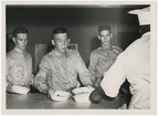 Cadets eating in Mess HallClemson University LibrariesOne Clemson cadet pours water for his companions in one of the dining rooms in the old Mess Hall. On back: [Mess Hall]; [1944]