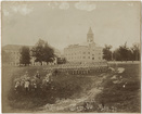 Clemson Agricultural College, South Carolina, 1894Clemson University LibrariesCadets with marching band in formation on south side of Main Building and wing of Barracks No. 1. On back: Copy made by Clemson Photo Lab, Feb. 1968