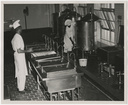 Mess Hall kitchen staffClemson University LibrariesA Mess Hall kitchen staff member fills buckets with hot water while a second staff member looks on. On back: [Mess Hall Kitchen and Staff]