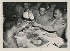 Cadets eating in Mess HallClemson University LibrariesOne Clemson cadet pours water for his companions in one of the dining rooms in the old Mess Hall. On back: [Mess Hall]; [1944]
