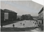 Barracks No. 4-7 Clemson University Libraries Looking west toward Field House, Barracks no. 5 and 4 in background and No. 6 and 7 in foreground. On back: [Quadrangle]. #16 Air Brush Line Out. Cut 3" x 4". 9 x 3 1/4. . 3/20