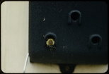 Carpenter bee emerging from hole Clemson University Arthropod Collection Written on slide: Carpenter bee in the wrong hole; Photo by E.L. Manigault Fairmont, W. VA.