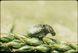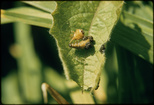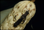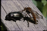 Weevil attack larva of unknown insectClemson University Arthropod CollectionWritten on slide: Attacking larvae of; Photo by E.L. Manigault Fairmont, W. VA.