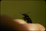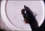 Iridescent rove beetle eating fruitClemson University Arthropod CollectionWritten on slide: Irridescent Rove Beetle; Photo by E.L. Manigault Fairmont, W. VA.