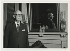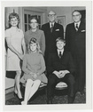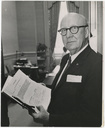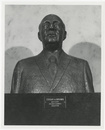 Edgar A. Brown and R. C. Edwards posed with bust of BrownClemson University LibrariesUA100_1943; On Back: [Robert C. Edwards, Edgar A. Brown, bust of Edgar A. Brown by Julian Harris, Annie S. Brown] [Edgar Brown Room in R.M. Cooper Library] [c1971]