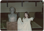 A. Wolfe Davidson's granddaughter Jennifer Burwinkle with bust of her grandmother Katherine Harbin Davidson, circa 1975