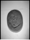 Close up of bas-relief portrait medallion of A. Wolfe Davidson's daughter Edith and granddaughters Jennifer, Jessica and Johanna Burwinkle, circa 1971