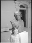 A. Wolfe Davidson's granddaughter Jennifer Burwinkle with bust of Marshall Prevost in an exhibition, 1971