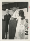 A. Wolfe Davidson's sister-in-law Margaret Cochran (left) watches his granddaughter Jennifer Burwinkle unveil ceramic bust of Katherine Harbin Davidson in John Harrison Hosch Library at Gainesville (Gerogia) Junior College, 1975 March 10