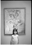 A. Wolfe Davidson's granddaughter Jennifer Burwinkle with painting in an exhibition of a cowboy on a bucking horse, 1971