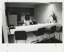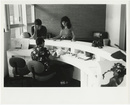 Three people at an entrance desk in Calhoun Courts