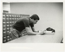 Patron using card catalog at Cooper Library Clemson University Libraries On back: [R.M. Cooper Libraries interior]