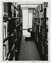 Person in stacks in Cooper Library Clemson University Libraries On back: [R.M. Cooper Library interior] [1974]; Library Interior 2/74