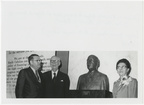 Edgar A. Brown and R. C. Edwards posed with bust of BrownClemson University LibrariesUA100_1943; On Back: [Robert C. Edwards, Edgar A. Brown, bust of Edgar A. Brown by Julian Harris, Annie S. Brown] [Edgar Brown Room in R.M. Cooper Library] [c1971]