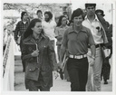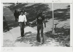 Clemson College campus with snowfallClemson University LibrariesCadets walking through snow on campus. Barracks No. 2, no. 1 and Main Building in the background.