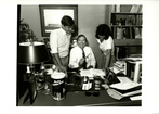 Staff meeting inside Edwards Hall Clemson University Libraries Interior shot of four nursing college teachers in a meeting in an office at Edwards Hall (also known as the College of Nursing). On back: UA100_001224; [Edwards Hall office]; [01-87]