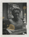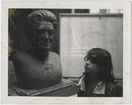 A. Wolfe Davidson's granddaughter Jennifer Burwinkle with bust of her grandmother Katherine Harbin Davidson, circa 1975 Clemson University Libraries Bust created for the John Harrison Hosch Library at Gainesville (Georgia) Junior College.