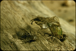 Dragonfly and Nymphal CaseClemson University Arthropod CollectionWritten on slide: Dragonfly and nymphal case; Photo by E.L. Manigault Fairmont, W. VA.
