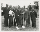 Groundbreaking ceremony for R. M. Cooper LibraryClemson University LibrariesOn back: [R.M. Cooper Library]; Library Groundbreaking, August 1964. From left: Bill Carlisle, Architecture; Melford A. Wilson, Vice-President for Fiscal Affairs; Ralph S. Collins, Physical Plant Director; Gordon Gourlay, Library Director; J.K. Williams, Vice-President for Academic Affairs; Robert C. Edwards, President; Wright Bryan, Vice-President for Development; Traverse Foster and Bob Yeargin Construction Company.; LIBRARY GROUND BREAKING CEREMONIES