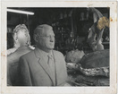 Edgar A. Brown and R. C. Edwards posed with bust of BrownClemson University LibrariesUA100_1943; On Back: [Robert C. Edwards, Edgar A. Brown, bust of Edgar A. Brown by Julian Harris, Annie S. Brown] [Edgar Brown Room in R.M. Cooper Library] [c1971]