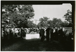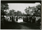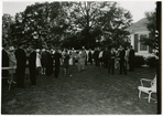 Reception at President's HomeClemson University LibrariesExterior shot of crowd at a reception on the grounds of the President's Home. On back: President's Home Exterior crowd photo; [1963]