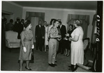 Reception at President's HomeClemson University LibrariesInterior shot of guests, including Clemson cadets, at a reception in the President's Home. Photograph taken during Robert C. Edwards tenure as president. On back: President's Home Interior crowd photo; [1963]