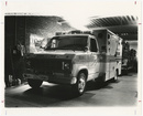Ambulance parked in Department of Security building Clemson University Libraries UA100_001261; On Back: [Fire Station]; FIRE DEPT.