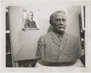 Clay bust of Orlin Ottman Fletcher with reference photograph, circa 1965