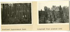 Woodland improvement work; Longleaf pine planted 1931Clemson University LibrariesTwo images. Caption below photographs: Woodland Improvement Work;Longleaf Pine planted 1931. On back of photograph: Report of Dean & Director to President, Ag Dept, folder #6 attach to Annual Report to the School of Agriculture 1935-1936, Series 16 and Edwards Box #15.