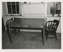 Dormitory study table and chairsClemson University LibrariesOn back: Littlejohn Collection Duplicate [Barracks Interior View] 287 3" legs - 30" high, 2 1/2" Boards on top - 54"x34" If these tables are to be used, all of the 287 should be re-topped with plywood or other type pressed material - there tables are badly cut up Inventory 287 Chair - Captain 1008 = 668 Good, 340 Fair