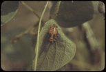 Crab spider and love bug on leafClemson University Arthropod CollectionWritten on slide: Crab Spider and Love Bug; Photo by E.L. Manigault Fairmont, W. VA.