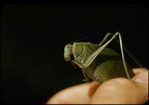 Written on slide: Katydid (female); Photo by E.L. Manigault Fairmont, W. VA.