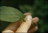 Written on slide: Katydid camoflauged on Brazilian Pepperbush; Photo by E.L. Manigault Sarasota, Florida
